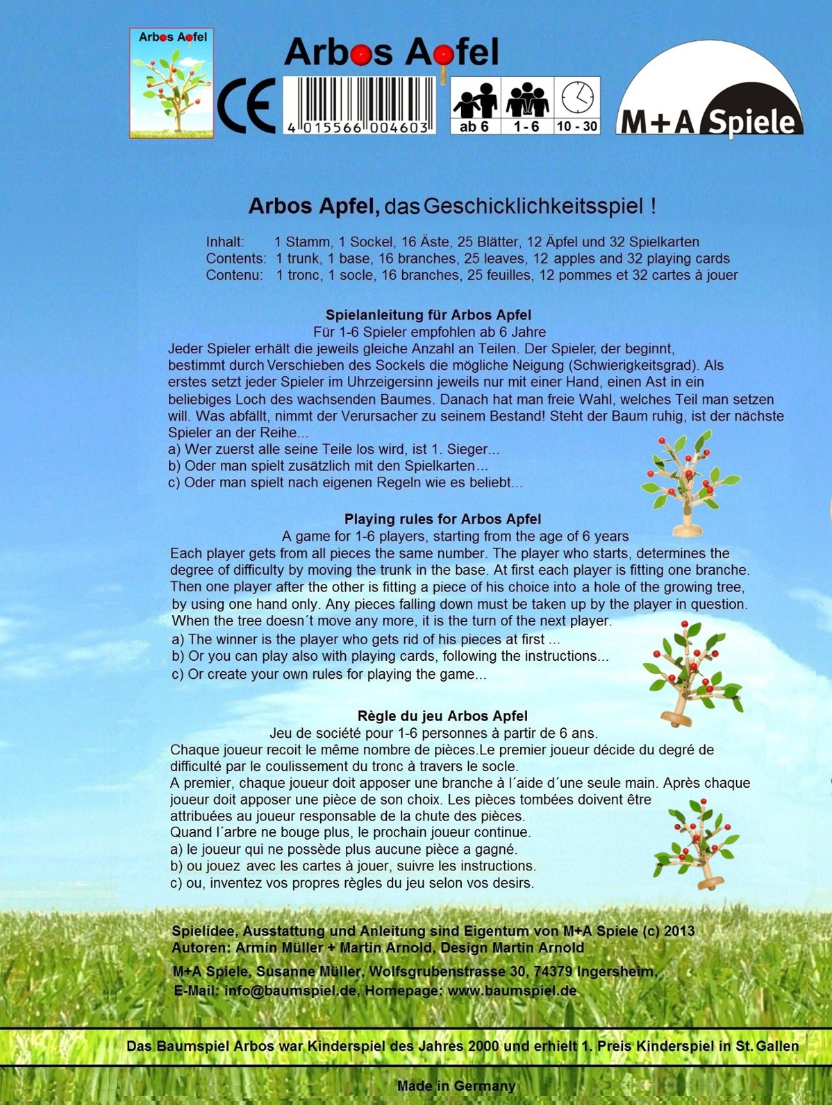 erhältlich bei M+A Spiele Fon 07141 903462 Fax 07141 97 23 44, info@baumspiel.de |
